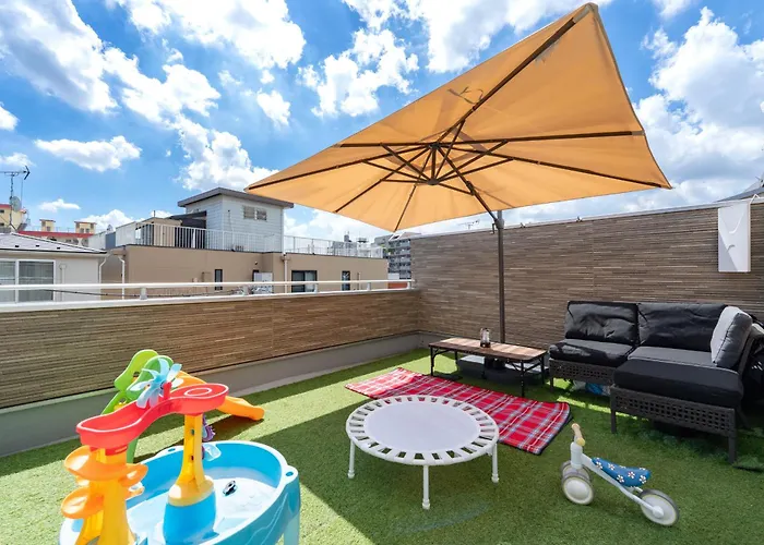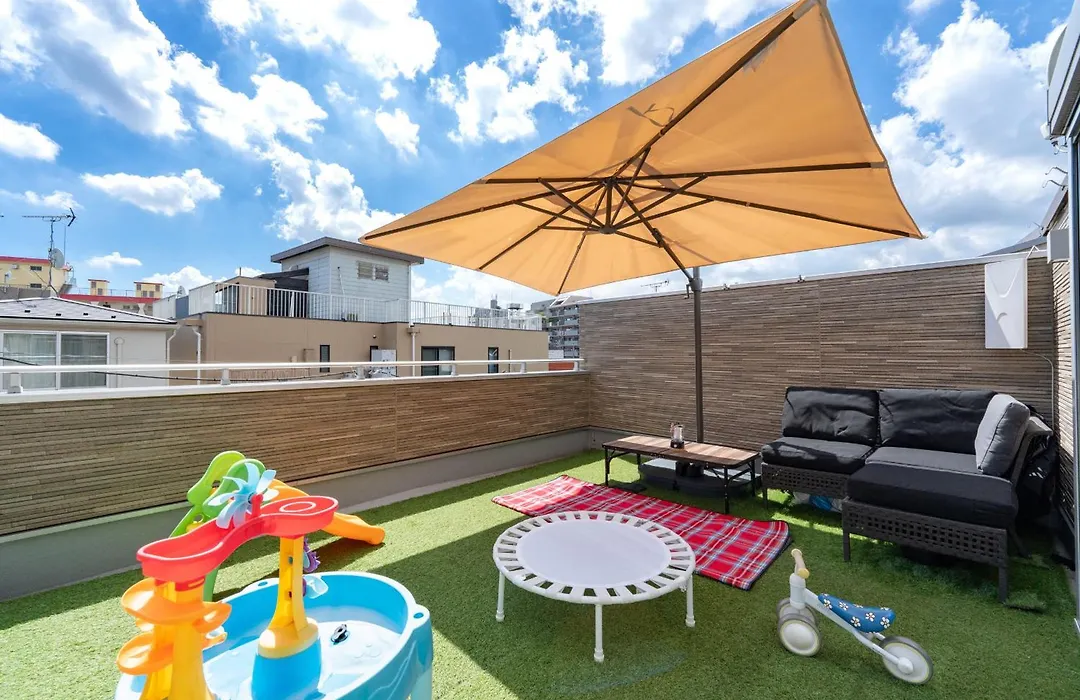 别墅距离板橋區役所前站地铁站仅有150米。 这栋别墅内的休闲设施包括屋顶游泳池。